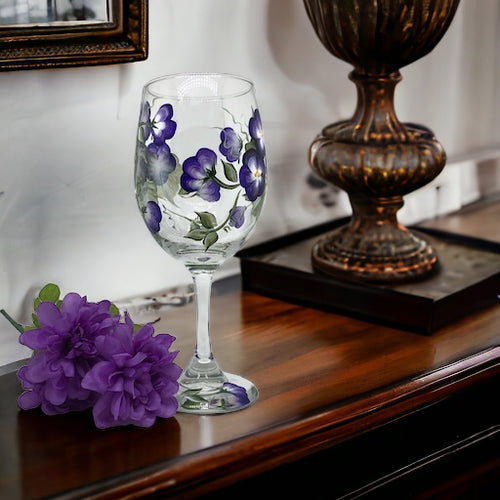 Hand Painted Blue Floral Wine Glasses (Set of 2)