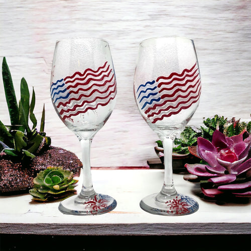 Hand Painted Patriotic Wine Glasses (Set of 2)