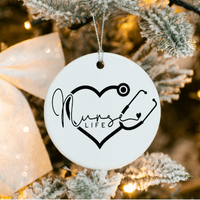 Nurse Ornaments for holiday gifting this year. This personalized Nurse Life Christmas gift ornament features a heart with stethoscope and "Nurse Life" on one side and name and year on the back. This Ornament is a high quality, lightweight, white brushed metal that will not break or crack if accidentally dropped. A wonderful keepsake gift to keep, to give as a Secret Santa or holiday hostess gift. Each ornament comes in a gift box ready for gift giving.