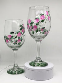 Hand Painted Wine Glasses - Pink Rosebuds Swirl (Set of 2)