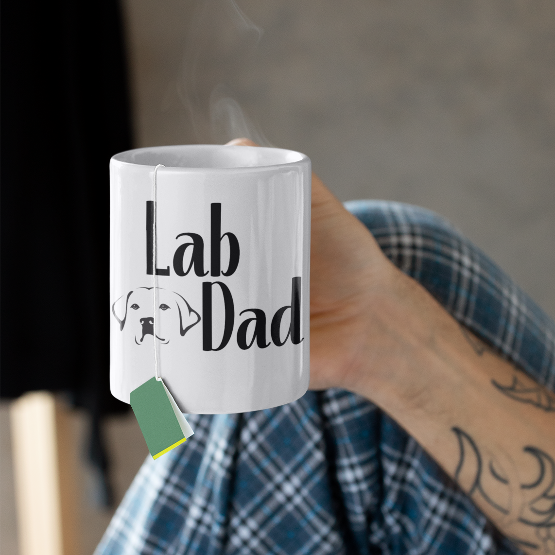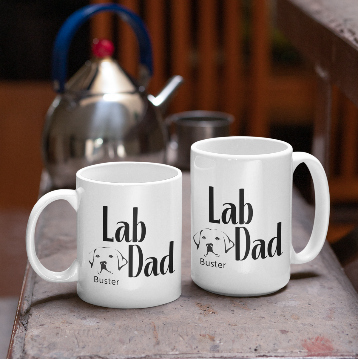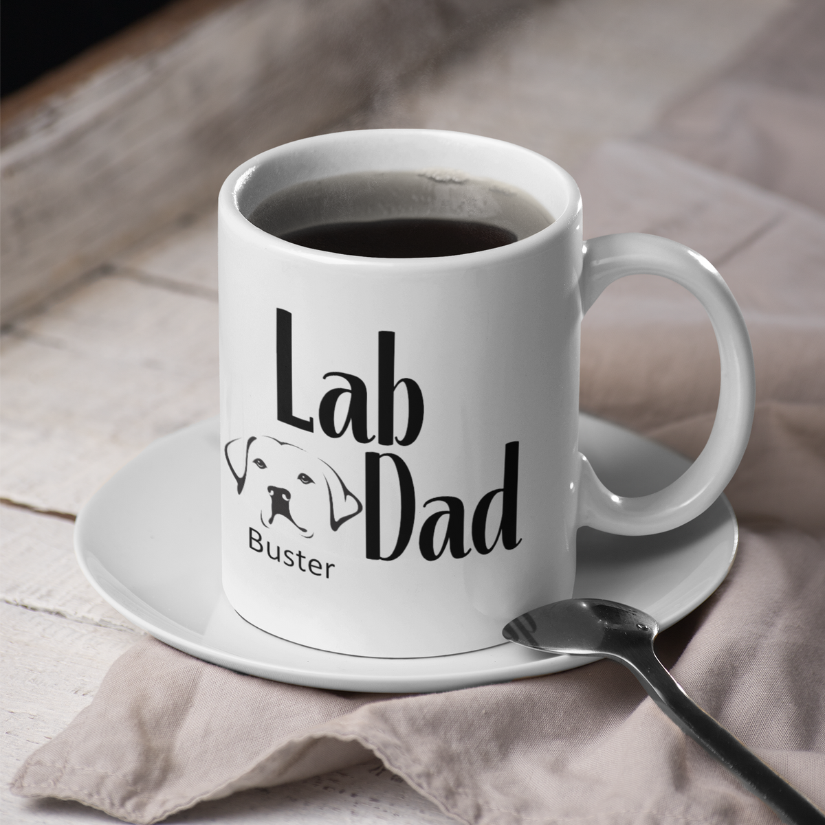 A whimsical, personalized pet mug for the dog owner in your life. Do you know someone who takes their Labrador Retriever everywhere? This Lab Dad mug makes the perfect pet owner gift. This personalized pet mug is perfect for Father’s Day. A keepsake gift to cherish for many years to come. And... if YOU are a dog dad...get one for yourself with your own little fur babies name on it.